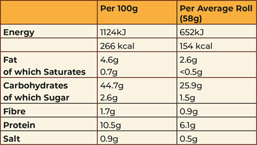 Wheat Flour (with Calcium Carbonate, Iron, Thiamin (B1), Niacin (B3)), Water, Sesame Seeds (6%), Yeast, Sugar, Salt, Vinegar, Rapeseed Oil, Soya Flour, Palm Oil, Emulsifier (Sodium Stearoyl-2-Lactylate), Preservative (Calcium Propionate), Flour Treatment Agent: Ascorbic Acid (Vitamin C)